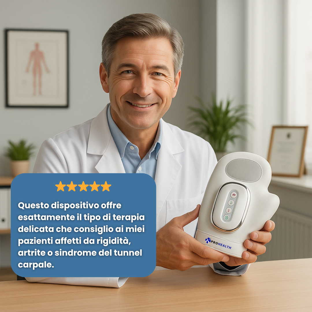 Con il calore terapeutico profondo e la Terapia Ritmica Decomprimente, ti offre un sollievo che dura, restituendoti la libertà di usare le mani senza paura.